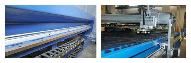 機架采用全焊接鋼結構,經時效振動器處理,內應力從而使機架穩定性,變形量較小。X軸采用高精度直線圓型導軌、Y軸采用高精度的直線導軌,其運行阻力較小。X軸和Y軸安裝經多功能儀器檢測安裝,X軸兩導軌直線度誤差小于±0.05mm,X軸和Y軸的垂直誤差不大于±0.05度,其運行小車采用輕質的結構,便于等離子切割的加工質量。工業電腦操作系統是在性能穩定的DOS系統操作,具有較好的人機對話界面,中英文語言可以任意轉換。X軸和Y軸運行速度大可達到8米/分鐘。工業控制電腦可以接口ISO標準的CNC語言,可以顯示切割圖形,模擬切割,并且具有手動編程功能。
